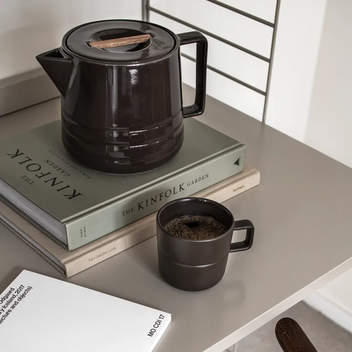 Lines tekanne 1,5 liter fra svenske NJRD er laget av slitesterk blank vitro-porselen med rene linjer og et lokk med en vakker tredetalj. Du låser lokket ved å vri det en kvart omgang etter at du har fylt opp den med din favoritt. Tekannen har en pyramideformet og dryppfri tut, samt et stort funksjonelt håndtak som gjør det enkelt å helle te både til hverdag og mer spesielle anledninger. I tillegg til det unike håndtaket og de rette linjene, har tekannen også tre nedsenkede linjer i designet. De taktile linjene er et kjennetegn for porselensserien Lines og gir tekannen et levende design å fylle hjemmet ditt med. Den vakre tekannen har et bestående og solid grafisk design, designet av designerduoen Bernadotte & Kylberg. Tekannen har en klassisk form med bred bunn, noe som betyr at den står stødig på bordet slik at du ikke trenger å bekymre deg for at den velter. Funksjonalitet og design på sitt beste - nøyaktig de elementer som NJRD alltid går ut ifra når de skaper sine produkter. Inviter vennene dine hjem på brunsj eller kaffe og dekk bordet med denne tekannen sammen med for eksempel krus, tallerkener, sukkerskål og melkekanne i Lines-serien for flere skandinaviske øyeblikk i ditt hjem. Serien kommer i forskjellige rolige farger som er flott å kombinere med hverandre for en unik borddekking. Inspirasjonen til fargene er hentet fra den skandinaviske naturen. Produktet tilhører NJRDs Edges-kolleksjonen.