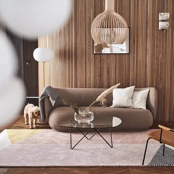 Rectangles ullteppe rosa fra NJRD er håndtuftet av Bernadotte & Kylberg og byr på et mykt, innbydende uttrykk med klar formsans. Laget av 100% nyzealandsk ull får teppet en fin glans og en tett lugg som føles herlig under føttene og gir rommet varme og ro. Perfekt i stue eller soverom der du vil skape et ombonet sted å hvile. En tidløs følgesvenn som løfter interiøret med både design og komfort.