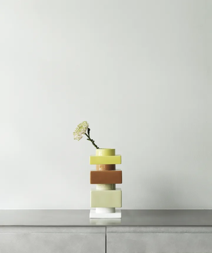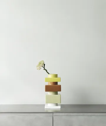 Deko Object S3 vase fra Normann Copenhagen er laget i keramikk og designet av Studio Yolk. Denne allsidige vasen, tilgjengelig i farger som Sage, Lemon, Hazel og Snow, gir brukeren mulighet til å lage personlige oppsett. Vasen kan brukes som en dekorativ detalj, en praktisk oppbevaringsbeholder eller som en kunstnerisk skulptur. Deko Object S3 vase er en design som fortsetter å overraske.