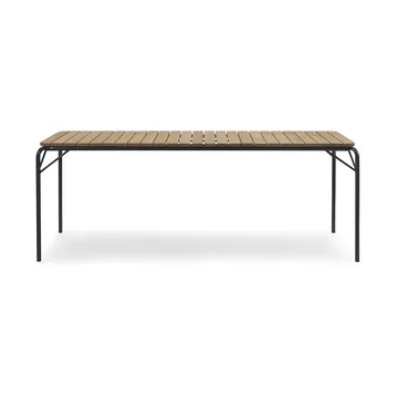 Vig Robinia spisebord 90x200 cm fra Normann Copenhagen er en del av den allsidige Vig-serien, designet av Simon Legald. Bordet er laget av dobbel pulverlakkert stål og Robinia-tre, kjent for sin styrke, holdbarhet og værbestandighet. Denne kombinasjonen av materialer gir bordet en elegant estetikk og lang levetid, perfekt for utendørsbruk i alle værforhold.