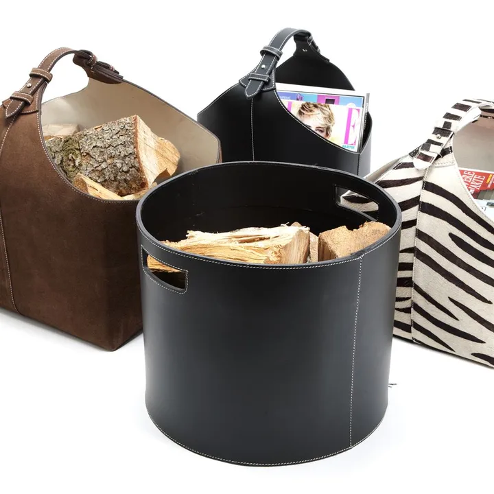 Den rustikke og runde vedkurven fra danske Ørskov er laget i skinn av høy kvalitet med praktiske håndtak. Kurven er perfekt å sette ved siden av ildstedet og er både en praktisk og vakker innredningsdetalj. Match den gjerne med andre populære skinnprodukter fra Ørskov for en enhetlig look!