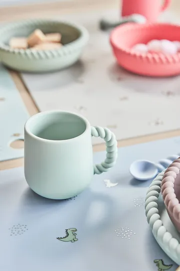 Theo Dino spisebrikke 34 x 45 cm fra OYOY er laget av 100 % silikon og bringer dinosaurienes magi til barnas måltid. Denne rektangulære spisebrikken er et must for alle små dinosaurientusiaster. Den generøse størrelsen gir god plass til tallerken, kopp, bestikk og eventuelle søl.