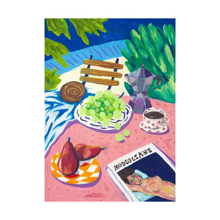 Modigliani in the Garden poster er trykt på miljøsertifisert FSC- og Svanen-merket papir med et motiv av kunstneren og illustratøren Adee Ardon. Med myke, varme toner i nyanser av rosa, rød, blå og grønn skapes en vibrerende bevegelse gjennom lag av oljepastell og oljestift. Modigliani in the Garden poster er like fin alene som når den kombineres med andre plakater og posters i en billedvegg.