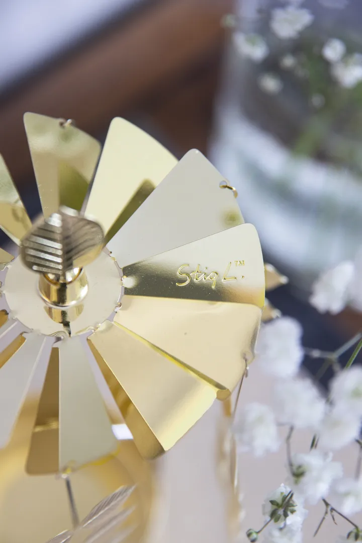 Stig L Berså englespill medium fra Pluto Design er laget i metall og prydes av det klassiske Berså-mønsteret, formgitt av Stig Lindberg. Denne mellomstore varianten snurrer ved hjelp av varmen fra et stort telys, noe som skaper en magisk atmosfære.