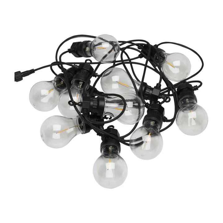 Glow lyslenke 8,7 m fra svenske PR Home kan brukes både innendørs og utendørs og skaper en koselig stemning med sitt varmhvite skinn fra de ti klare lyspæreformede lyskildene. På hver lampeholder sitter en liten krok for enkel opphenging. Heng opp Glow lyslenke innendørs, på balkongen, eller på altanen og nyt mange lange kvelder med familie og venner.