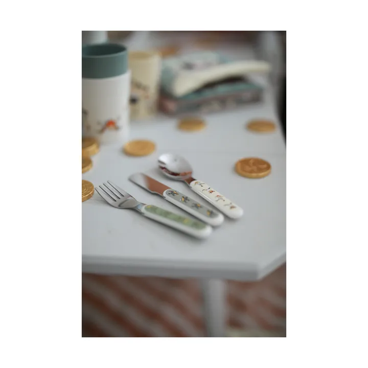 Pippi Sirkus barnebestikk 3 deler fra Rätt Start er laget av ABS-plast og rustfritt stål. Bestikket, som er dekorert med motiver fra Pippi Langstrømpe illustrert av Ilon Wikland, består av kniv, gaffel og skje som passer perfekt for små hender. Leveres i en praktisk gaveeske.