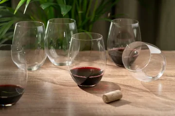 O Wine Tumbler 20-årsjubileum Cabernet/Merlot 6 stk fra Riedel er laget i glass og spesielt designet for Cabernet og Merlot. Den store, høye kupen med vid åpning demper tørrheten og reduserer syren, noe som fremhever fruktsødmen og gir vinen en rundere smak. Passer også til flere andre vintyper.