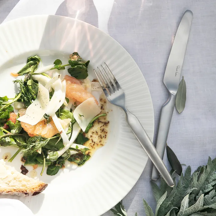 Bergen gaffel matt fra Robert Welch har en vakker sateng-finish og et stilrent design med rene linjer som smalner av på midten, noe som skaper en elegant silhuett. Den velbalanserte gaffelen ligger godt i hånden og er laget av rustfritt, førsteklasses stål. Kombiner gaffelen med kniven og andre bestikk i samme serie for en helhetlig stil på det dekkede bordet.