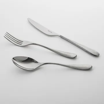 Sandstone spiseskje blank fra Robert Welch i rustfritt stål har en fin struktur på skaftet som gjør skjeen både behagelig å holde i og vakker å dekke bordet med. Sandstone spiseskje blank inngår i en stilfull og elegant bestikkserie som vil vare lenge og som kan brukes både til hverdags og til fest.
