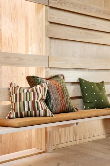 Fri pute 60x60 cm fra Røros Tweed er laget av høykvalitets lamull og fylt med dun for optimal komfort. Designerne Torbjørn Anderssen og Espen Voll har omdefinert det tradisjonelle norske løpermønsteret med nye, sofistikerte fargekombinasjoner, noe som gjør puten passende for de fleste anledninger.