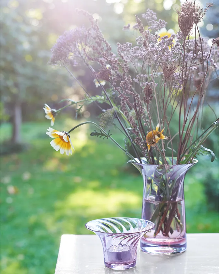 Filigran Optic Anniversary vase blush er laget av munnblåst glass med vakkert vridde striper. Bruk blomster-vasen sammen med en blomsterbukett og la den bli en iøynefallende detalj på spisebordet eller bokhyllen i stua.