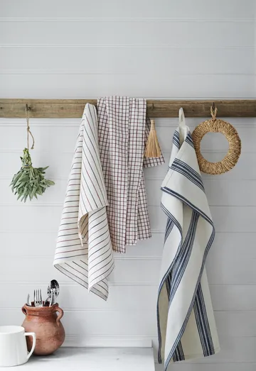 Garn Kjøkkenhåndkle 50x70 cm fra Rosendahl er laget av 75% resirkulert GRS-sertifisert bomull og 25% GRS-sertifisert polyester. Dette kjøkkenhåndkleet fra Rosendahl Textiles-serien kombinerer funksjonalitet med farge, med variasjoner av klassiske kjøkkentekstiler. Det har en pen og funksjonell vev som absorberer godt og tørker raskt.