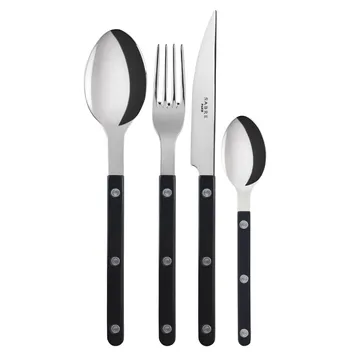 Bistrot bestikk shiny 24 deler fra det franske merket Sabre Paris er et bestikksett som føles både lekent og tradisjonelt. Bestikket er laget av rustfritt stål med akrylhåndtak av høy kvalitet, i Sabre Paris sin egen fabrikk i Frankrike. Velg blant flere ulike farger på de ensfargede håndtakene. Settet inneholder seks skjeer, seks gafler, seks kniver og seks teskjeer, som alle er klare til å pryde oppdekkingen.