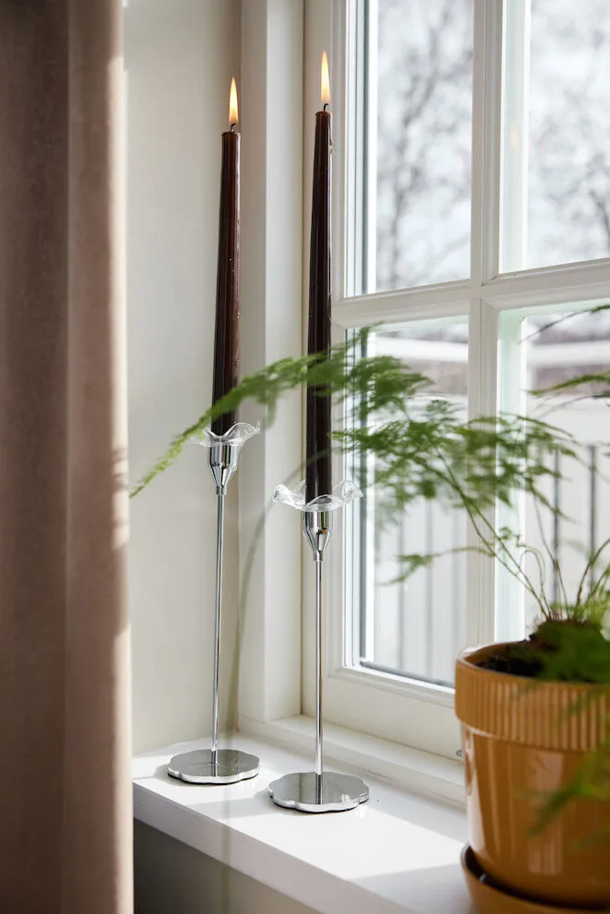 Viva lysmansjett 2-pk fra Sagaform er en vakker og funksjonell detalj som gjør levende lys enda hyggeligere. Munnblåst glass og et formspråk hentet fra vintage møter organisk, mer moderne linjer, noe som gir dine lysestaker ny karakter og beskytter overflater mot dryppende stearin. Enkel å bruke — tre på mansjetten og forvandle en gammel eller ny lysestake til en personlig interiørdetalj. Perfekt for borddekking, vinduskarmen eller som en fin gave til den som verdsetter gjennomtenkt design.