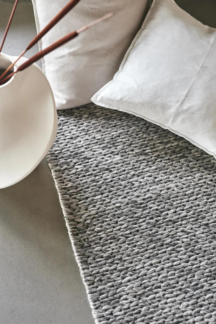 Braided ullteppe naturgrå er håndvevd av 100 % new zealandsk ull med en spennende mønsterstruktur i form av et flettemønster som dekker hele teppet. Det naturgrå melerte ullteppet er fint å plassere i soverommet eller i stuen. Det vakre håndflettede mønsteret skaper en lun følelse i hjemmet ditt. Den naturgrå fargen er dessuten enkel å kombinere med flere forskjellige interiørstiler og materialer. Ull er et naturmateriale som er naturlig vannavvisende og smussavvisende samtidig som det gir et lunt uttrykk til rommet, og en herlig følelse under føttene dine.