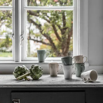 Krusene Dots fra Scandi Living kan brukes både til kaffe og te. Det dekorative hevede mønsteret strekkes seg som et perlebånd rundt koppen.