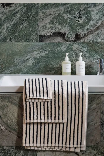 Drift håndkle 50x70 cm fra Scandi Living er et stilfullt håndkle i 100 % økologisk bomull, GOTS-sertifisert for en myk og holdbar kvalitet. De smale stripene i fargerike kombinasjoner gir en moderne tolkning av naturens organiske mønster, inspirert av drivvedens harmoniske bevegelse. En perfekt balanse mellom lekenhet og eleganse, som forsterker følelsen i badet ditt.
