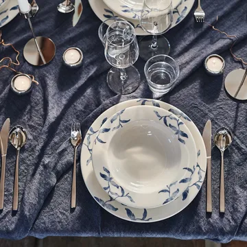 Romantisk og trendy - Havspil dyp tallerken 23 cm fra svenske Scandi Living er en del av porselenserien med samme navn. Et serivise inspirert av Sveriges öländske natur, kjent for vakker flora og landskap. Tallerkenen har et kvalitetssikkert hvit porselen med et blå-hvit mønster som likner akvarellfarger. Mønsteret løper langs hele produktets utside. Med Havspil på bordet skaper du en romantisk og avslappet stemning som påminner om öländs landskap, sommervind og spirende flora!