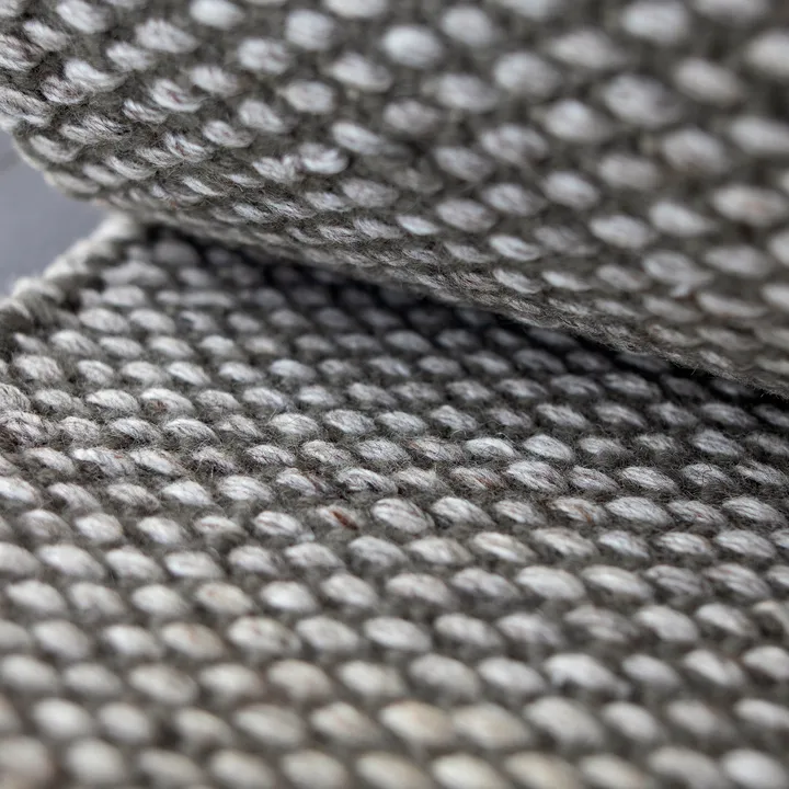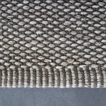 Lea er et håndvevd ullteppe med et diskré mønster i mørkegrå toner og med en vakker struktur som passer fint inn i den enkle, skandinaviske stilen. Det slettvevde teppet passer like godt i gangen som under spisebordet, der den smussavvisende ullen er et utmerket materiale å bruke. Fargen på ullen i dette teppet er helt naturlig, og materialet har ikke gjennomgått ytterligere innfargingsprosesser. Navnet Lea betyr eng eller felt på engelsk og henviser til den svakt bølgende strukturen på teppet, som skapes av mønsteret i to toner.