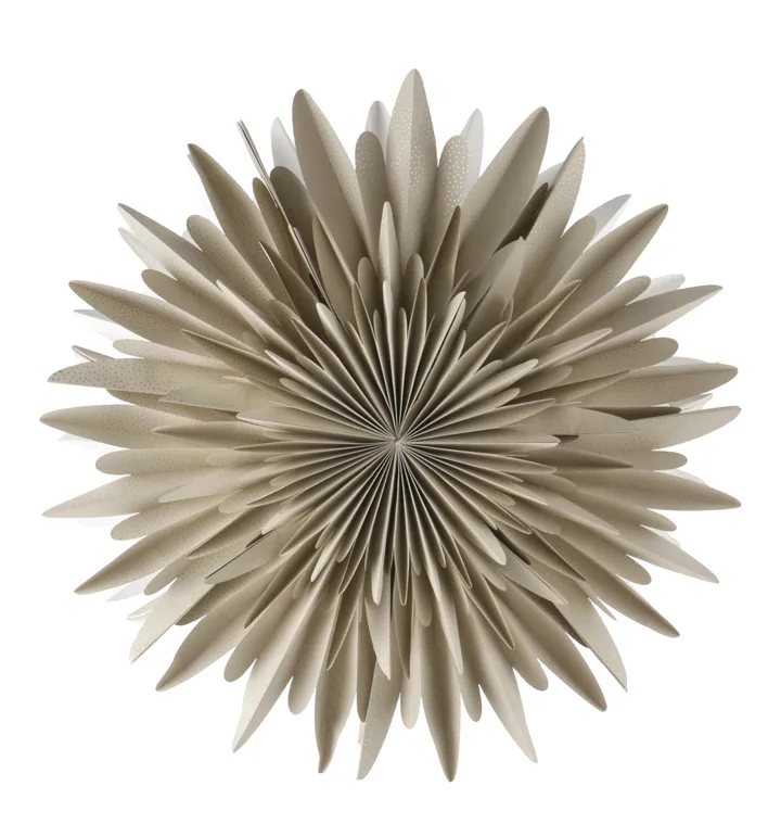 Luna adventsstjerne beige med prikker fra svenske Scandi Living er en rund julestjerne med en nostalgisk og tradisjonell følelse i moderne utgave. Adventsstjernen av papir har et dekorativt mønster av små prikker som lager vakre skygger og sprer et varmt og stemningsfullt lys. Papirstjernen kan også pynte opp en tom vegg i stuen og gi julestemning.