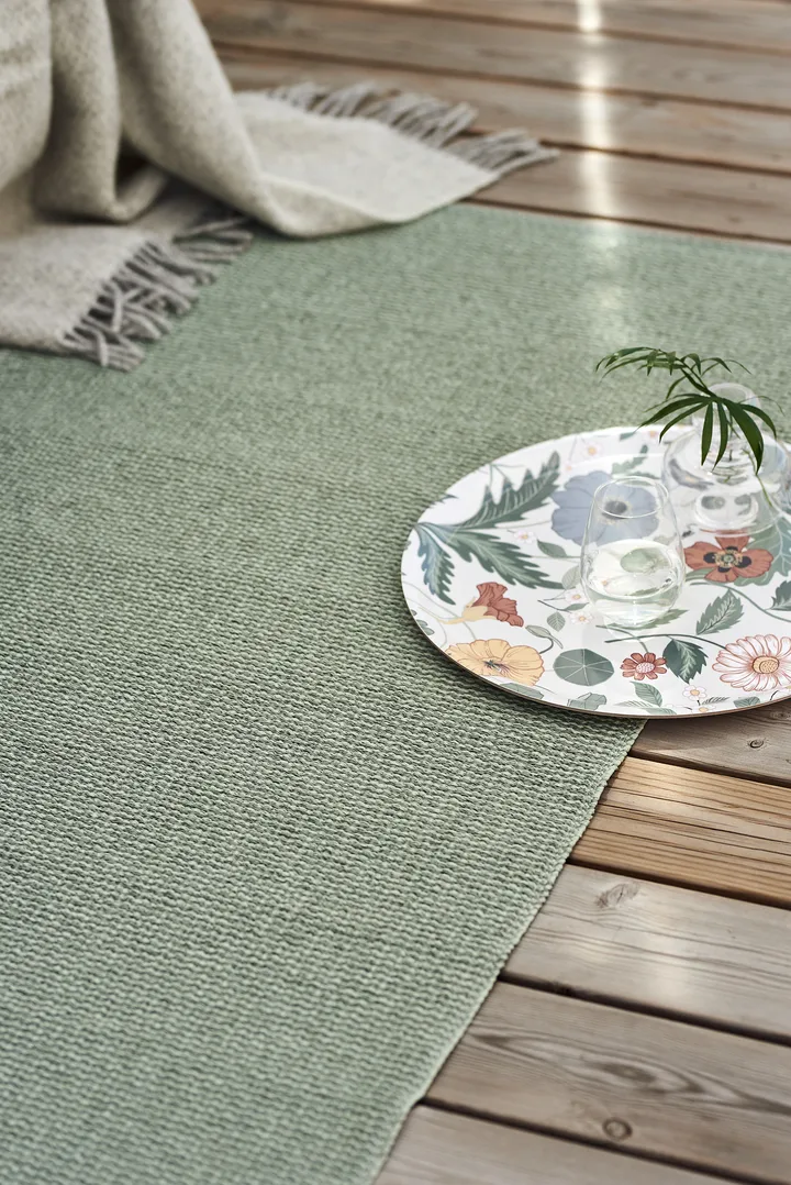 Mellow plastteppe grønn fra det svenske merket Scandi Living er et teppe laget av PVC og polyester, et materiale som gjør teppet veldig slitesterkt og enkelt å rengjøre. Teppet har en vakker grønn fargetone som passer i de fleste rom, og også utendørs fordi materialet besitter en høy UV-bestandighet. Velg mellom forskjellige størrelser.