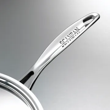 Fusion 5 kjele med lokk fra danske Scanpan er en del av en serie steke- & kokekar i rustfritt stål som kjennetegnes av den høyblanke finishen. Tallet 5 henviser til femlagskonstruksjonen som er designet for å tåle maksimal varme, noe som betyr at tilberedningstiden reduseres til et minimum. Andre egenskaper kjelene har, er at de har en dryppfri kant og en måleskala som gjør hver kjele utrolig brukervennlig. Kjelen fungerer på alle varmekilder og er utrustet for å tåle virkelig tøffe tak. Derfor er det kanskje ikke så rart at Fusion 5 har blitt et selvsagt valg for mange profesjonelle kokker! Velg mellom ulike størrelser.