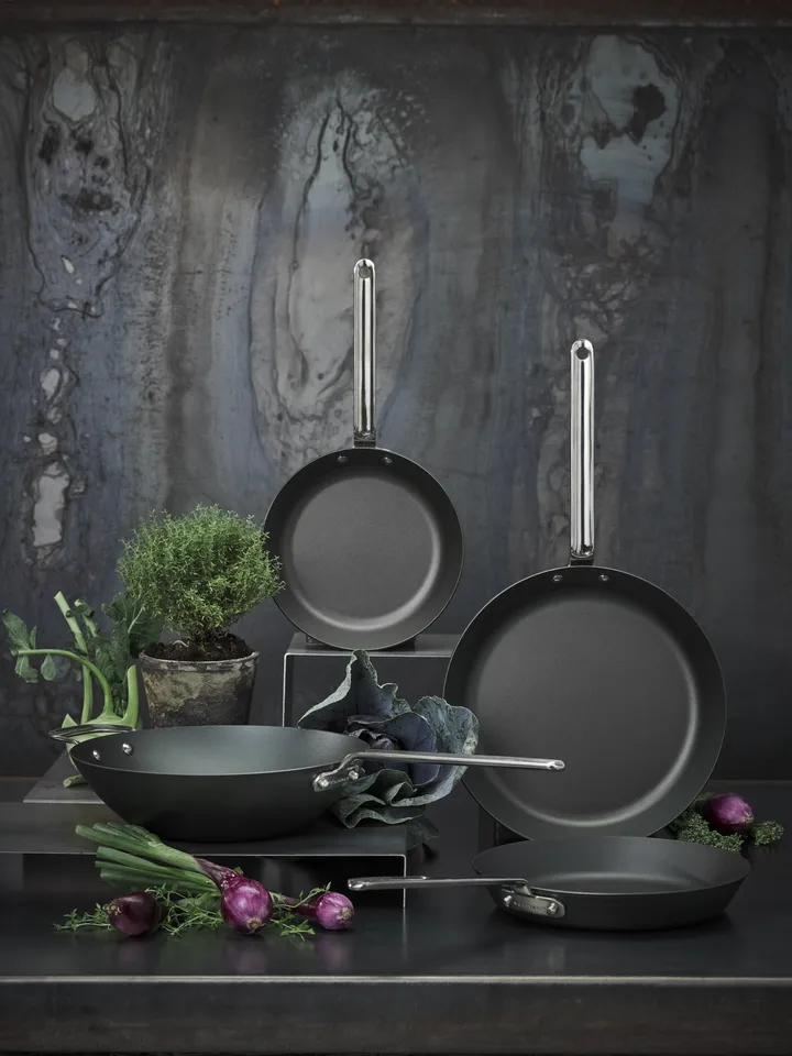 Scanpan stekepanne 22 cm fra Scanpan er en liten, hendig karbonstålpanne, perfekt for det lille husholdet. Karbonstål er en blanding av belagt og rustfri overflate, noe som gjør den ideell for alle slags matretter. Bruk den til å lage kremet eggerøre, sauterte grønnsaker eller en saftig biff.