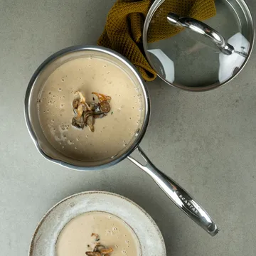 Scanpan STS kasserolle med lokk er laget av rustfritt stål og kommer fra Scanpans STS-serie. Denne lille, praktiske kasserollen på 1,2 liter har en hellekanne og er perfekt for sauser og mindre kok. Inkluderer et lokk i herdet glass.