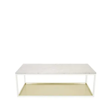 Sofabord 11, marmor hvit, hvitlakkert stativ, messingbelegg Scherlin