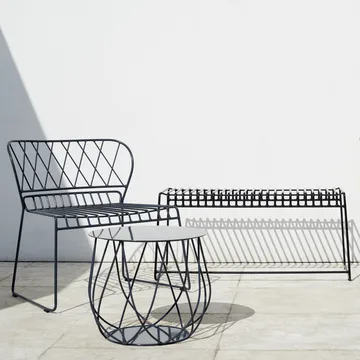 Resö benk fra Skargaarden er en elegant og gjennomtenkt utemøbel designet av Matilda Lindblom. Benken bygger på en stabil konstruksjon i lakkert rustfritt stål og har et luftig uttrykk takket være sine nøye formede tråder. Designen, inspirert av den bohuslenske fiskerlandsbyen Resö, passer både på verandaen, i hagen eller på uteplassen hvor den skaper en innbydende sitteplass. Robust nok for utendørsbruk og vakker nok til å stå framme året rundt — en tidløs detalj som forener funksjon og skandinavisk formgivning.