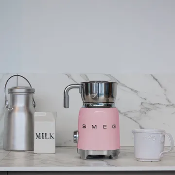 Smeg 50's Style melkeskummer 60 cl tilhører serien 50’s Style og er laget av rustfritt stål, tritan og plast. Med seks automatiske programmer og en manuell funksjon kan du enkelt lage både varme og kalde drikker, med eller uten skum. Induksjonssystemet gir jevn oppvarming og optimal melkeblanding hver gang. Kannene i rustfritt stål tåler oppvaskmaskin.