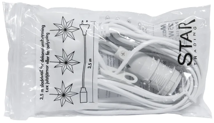 Ledning E14 3,5 m fra Star Trading er et komplett oppheng som kan brukes til adventsstjerner i papir. Kombiner med en passende lyskilde og en fin papirstjerne for å skape en herlig julestemning i vinduet ditt.