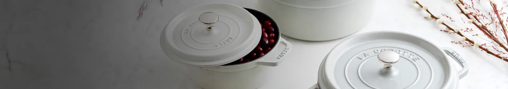 I Staubs store sortiment finner du kvalitetsutstyr for kjøkken, som ildfaste former, paiformer, sleiver og øser, i tillegg til tallerkener, kaffekopper og grytekluter. Den høye kvaliteten og den høye standarden på produktene gjør at Staub er en populære merkevare for både profesjonelle og hjemmekokker.