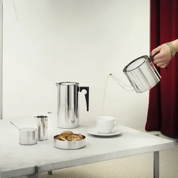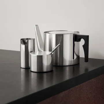 AJ cylinda-line sukkerskål kommer i et minimalistisk og sylinderformet design utviklet av Arne Jacobsen for danske Stelton. Den blir en flott detalj på middagsbordet, og takket være det praktiske lokket holdes sukkeret beskyttet og friskt så lenge som mulig. Lokket er dessuten utstyrt med et lite hull til skjeen i kanten slik at den alltid kan ligge i skålen.
