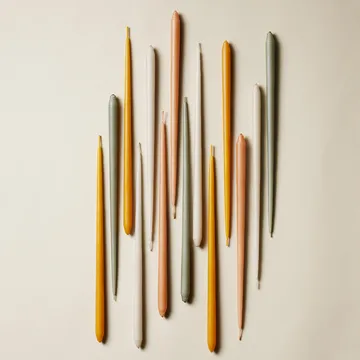 STOFF antikklys by ester & erik 6-pack fra STOFF er et sett med seks vakkert formede lys som fremhever Nagel-lysstakens karakter. De er laget av parafinvoks og er gjennomfarget for et fyldig, rustikt uttrykk og jevn brennetid. Hvert lys brenner i gjennomsnitt i 4 timer og leveres i en stilfull forpakning – perfekt å gi bort eller ha som reserve for dekkede bord og øyeblikk hjemme der detaljene gjør forskjell.