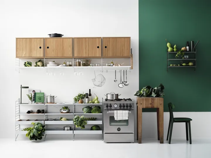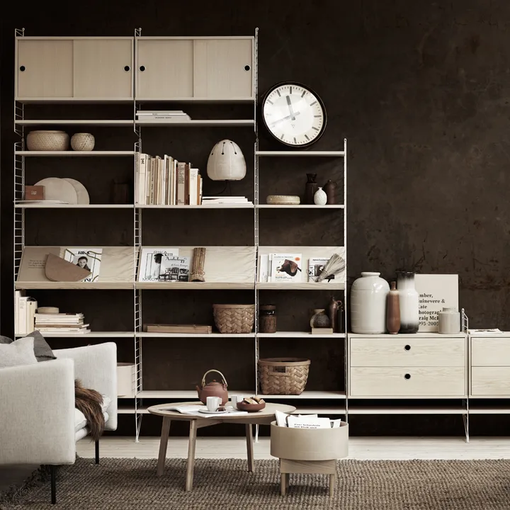 String veggavler er basen når du bygger din String-hylle. Gavlene fås i to høyder, 50 og 75 cm, og to dybder, 20 og 30 cm. Gavlene monteres på veggen og berører verken gulv eller tak, noe som gjør det enkelt å tilpasse hele hyllen til ethvert rom. Med sine elegante metalltråd blir String-panelet en elegant "stige" som klatrer oppover veggene. Legg til produkter fra String System for å skape din personlige løsning.