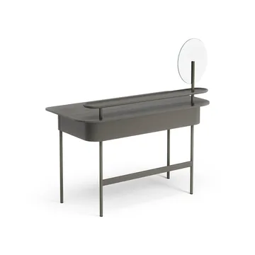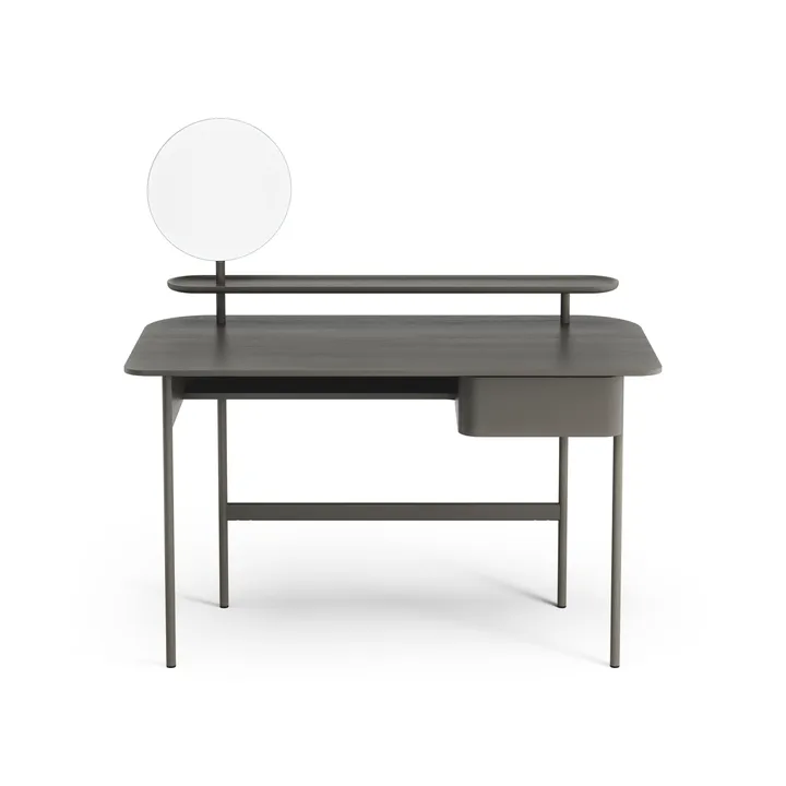 Luna skrivebord med skuff, hylle og speil fra Swedese er et elegant skrivebord designet av Broberg & Ridderstråle, der funksjon og skandinavisk enkelhet møtes i et velbalansert uttrykk. Den integrerte skuffen, hyllen og speilet gjør bordet til en allsidig møbel som fungerer like godt som sminkebord, arbeidsplass eller avlastningsflate i gangen. Hver detalj er utført med omsorg og presisjon, noe som gjenspeiler Swedeses håndverkstradisjon. Luna skrivebord med skuff, hylle og speil fra Swedese er en gjennomtenkt møbel som forener praktisk funksjon med varm, samtidsriktig design.