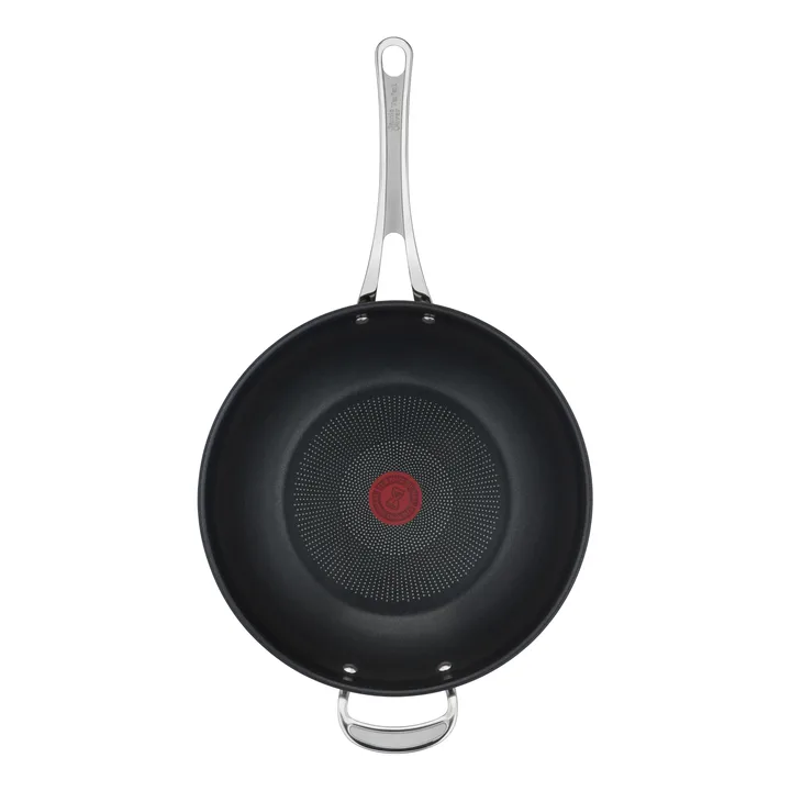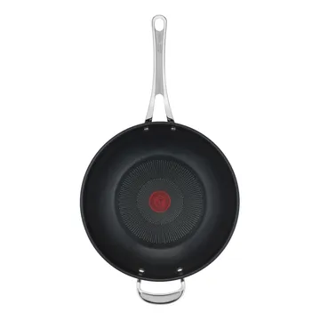 Jamie Oliver Cook's Classics wokpanne fra Tefal er produsert av rustfritt stål i høy kvalitet og er designet av Jamie Oliver. Wokpannen har en dypere form for mer fleksibilitet når du behøver vende og kaste på woken. Takket være at non-stick-belegget er utstyrt med titanpartikler, blir overflaten veldig solid. Bunnplaten er også designet med Thermo-Signal-teknologi, som indikerer når pannen har nådd optimal steketemperatur.