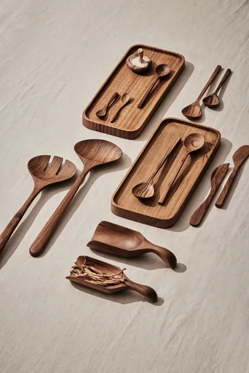Teak måleskje fra Tell Me More er en vakker og funksjonell øse i 100 % resirkulert teak, håndlaget for en unik følelse. Den robuste teakøse er ideell for å servere sukker, mel eller krydder og kombinerer bærekraft med tidløs design. Et perfekt tillegg til det stilfulle kjøkkenet.