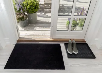 Unicolor dørmatte fra Tica Copenhagen er den perfekte kombinasjonen av stil og funksjon. Laget av slitesterk polyamid, tilbyr dørmatten en ideell løsning for å holde smuss og fukt borte fra gulvet, samtidig som baksiden av vinyl gir stabilitet og forhindrer at den sklir på gulvet.
