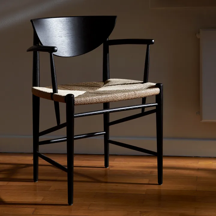 Drawn stol HM4 med armstøtte, Svart eik &Tradition