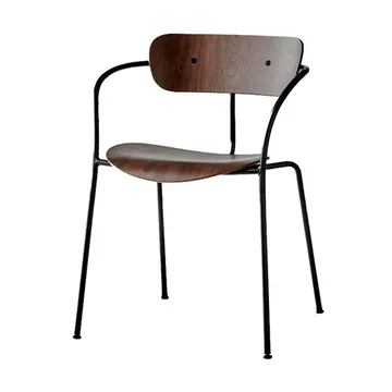 Pavilion stol AV2 fra &Tradition er en stablebar karmstol designet av Anderssen & Voll, med en lett og luftig silhuett som likevel gir god stabilitet. De elegant buede armlenene i formpresset stål møter et nøye utformet sete og rygg i tre, noe som skaper en varm og innbydende følelse rundt spisebordet eller i hjemmets sittegruppe. Pavilion kombinerer funksjon og tidløs design — lett å flytte, enkel å stable og vakker både til hverdagsmiddag og når gjestene kommer. En perfekt stol for den som ønsker kvalitet og gjennomtenkt formgivning i hjemmet.