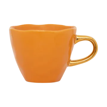 Good morning kopp mini fra merket Urban Nature Culture er en liten kaffekopp med et håndmalt, gullaktig håndtak. Miks og match den lille koppen med annet porselen fra den sjarmerende rustikke Good morning-serien.