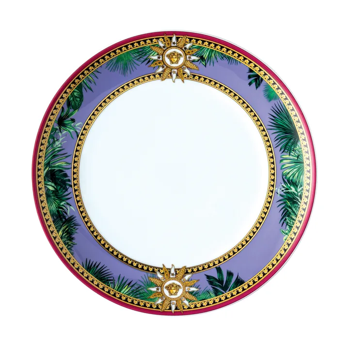 Tallerkener fra Medusa Blue er dekorert med Versaces Medusa, som har blitt symbol for merkevaren.