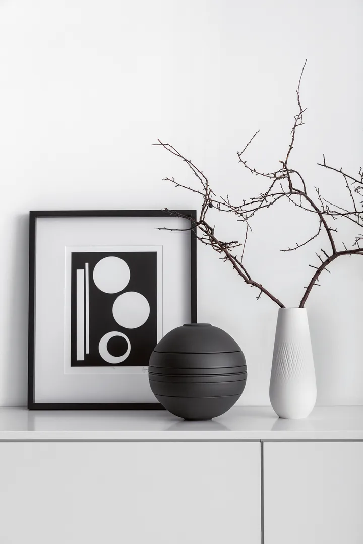 Iconic La Boule servise 7 deler fra Villeroy & Boch inkluderer syv boller og tallerkener i forskjellige størrelser laget i porselen av høy kvalitet med et spennende utseende og uttrykk. Tallerkenene og bollene kan kombineres akkurat som du ønsker og passer perfekt til blant annet suppe, salat og pasta. Bollene i Iconic La Boule serviset kan også settes sammen til en kule som en dekorativ interiørdetalj i rommet.