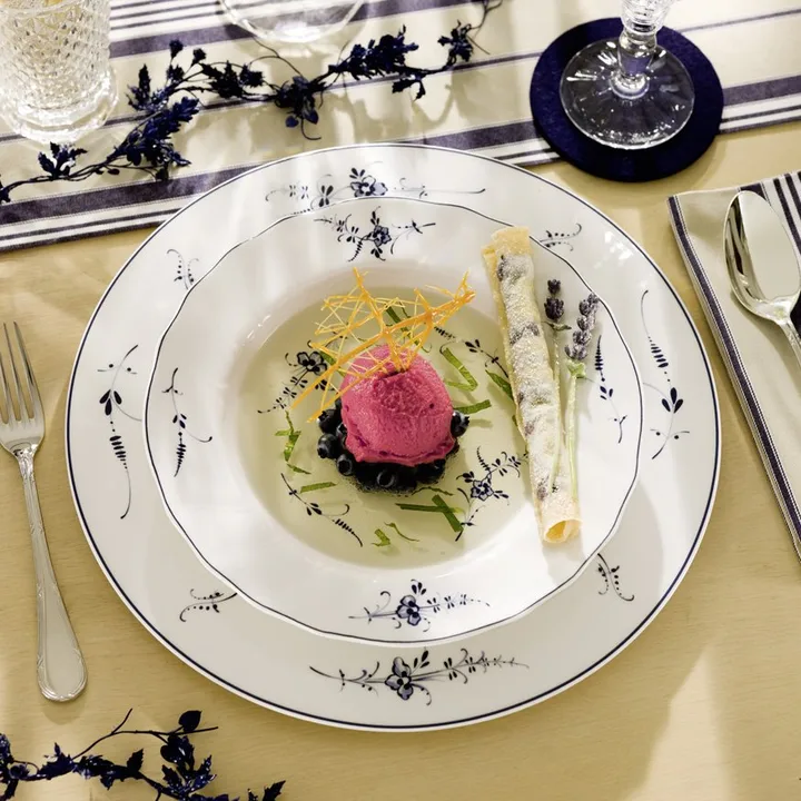 Den dype tallerkenen Old Luxembourg fra Villeroy & Boch passer utmerket til supper og fyldige gryteretter. Tallerkenen er laget i premiumporselen med en vakker blåblomstret dekor og en blå kant. Old Luxembourg har eksistert helt siden 1768, og det gjør det til et av Villeroy & Bochs eldste serviser. Det er en tidløs klassiker som gir det dekte bordet en landlig sjarm!