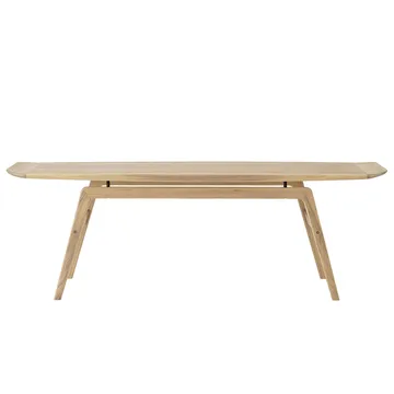 Soffbordet Surfboard salongbord 152x52 cm fra danske Warm Nordic ble opprinnelig formgitt i 1959 av den anerkjente danske møbeldesigneren Arne Hovmand Olsen. Det klassiske trebordet har, som navnet antyder, hentet sin inspirasjon fra formen til et surfebrett, og med sine oppbøyde kortsider får bordet en svært elegant silhuett. Den romslige bordlengden er perfekt for ekstra gjester i sofaen. Velg mellom forskjellige vakre treslag.
