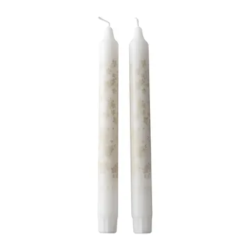 Slåpeblom kronelys 2-pakning Wik & Walsøe er to vakre lys hvis design er kledd av blomster for å hylla den verdifulle naturen. Sett de sjarmerende lysene i en lysestake etter eget ønske eller i en av de matchende lysestakene i Slåpeblom-serien. Plasser deretter på middagsbordet som et vakkert blikkfang.