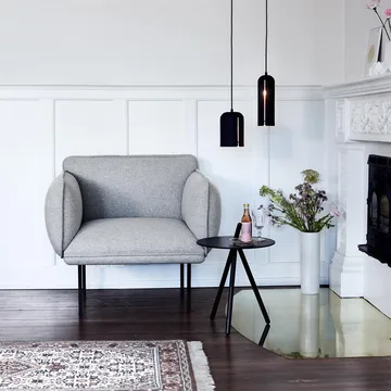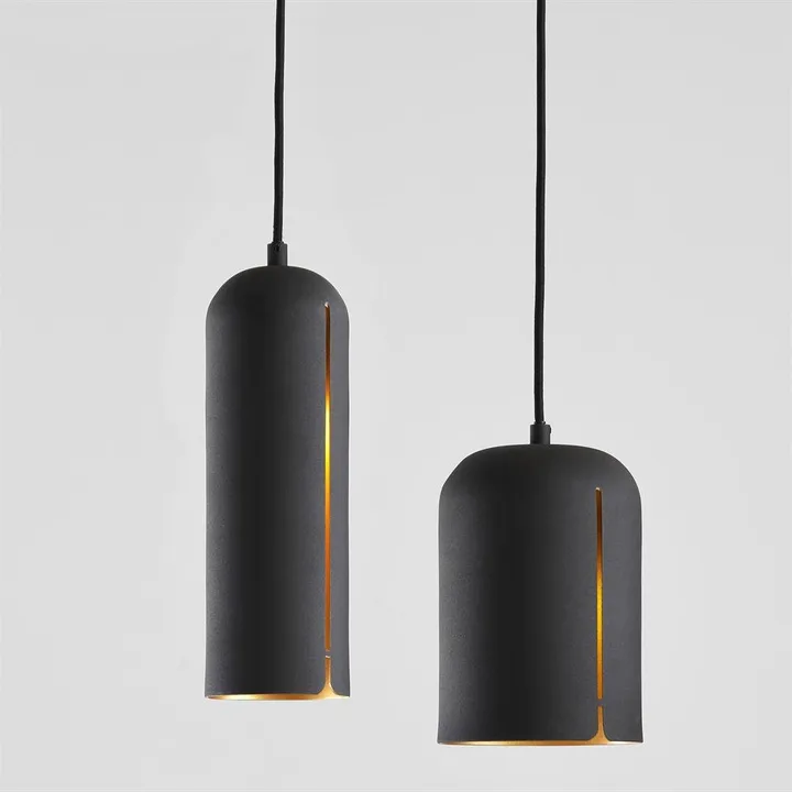Taklampen Gap fra Woud kombinerer en rå, litt industriell utside med en mer feminin look på innsiden. Innsiden er nemlig malt med messingfarge, noe som gjør at lampen gir ifra seg et varmt, trivelig skinn når den er tent. Lyset lyser også igjennom det karakteristiske "gapet" på sidene. En moderne pendellampe formgitt av Maja Bøgh Vindbjerg som går under designernavnet Nur.