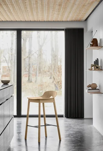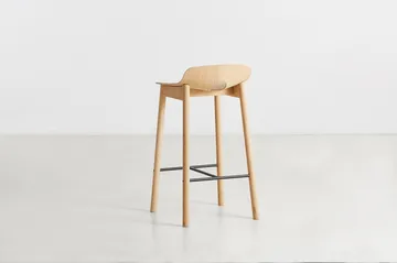 Mono barstol 65 cm er en stilren barstol designet av den finske designeren Kasper Nyman for det danske varemerket Woud. Barstolen, som er laget av massiv eik med sete i kryssfinér og eikefinér, har blitt utviklet gjennom å se på design med nye øyne.